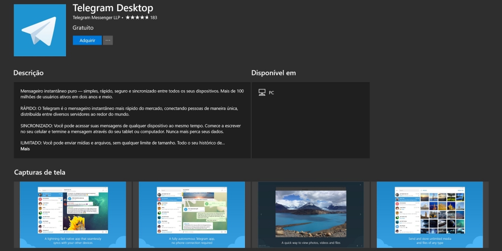 A nova versão do app de mensagens instantâneas para desktop já está disponível na loja do Windows 10Em quase todo o mundo, o Telegram disputa a popularidade com o WhatsApp, sendo mais ou menos utilizado, dependendo do país. Agora, a nova versão do app está disponível na loja do Windows. A atualização traz melhorias, como poder exportar as conversas. Mas a maior novidade mesmo é o novo tema escuro.Leia mais…